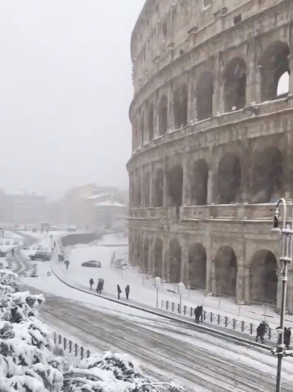 La côte ou les plages ont reçu quelques flocons, jusqu'à la capitale Italienne où l'on retrouve 10 à 15 cm de neige fraîche, le spectacle est magnifique.