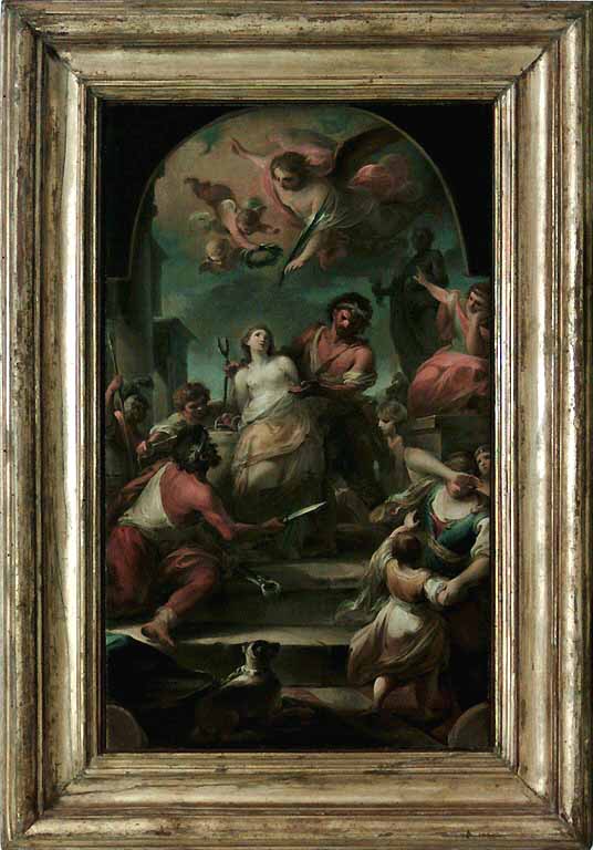 Ci-contre dans l'article la célèbre peinture exposée au Louvre : "Le martyre de Saint Agathe", commandée et faite pour l'église San Nicola all'Arena (église n'existant plus à Catane).