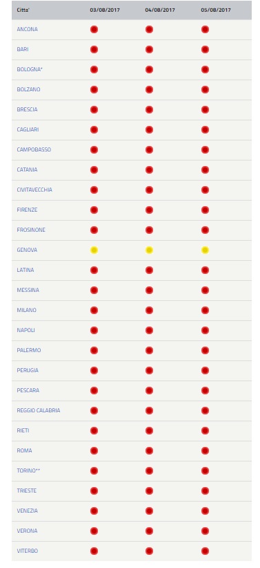 Bulletin canicule du 3 Août 2017 en Italie