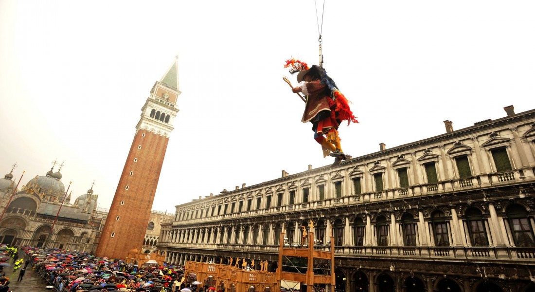 Le 26 Février 2017 à 12H00 tout s'enchaîne avec le vol de l'Aquila sur la Place Saint Marc et le vol d'Asino sur la Place Ferretto